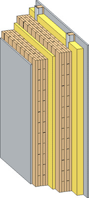 Ārsienas masīvkoka konstrukcija, nevēdināta, ar sausu oderi, ar apmetumu.